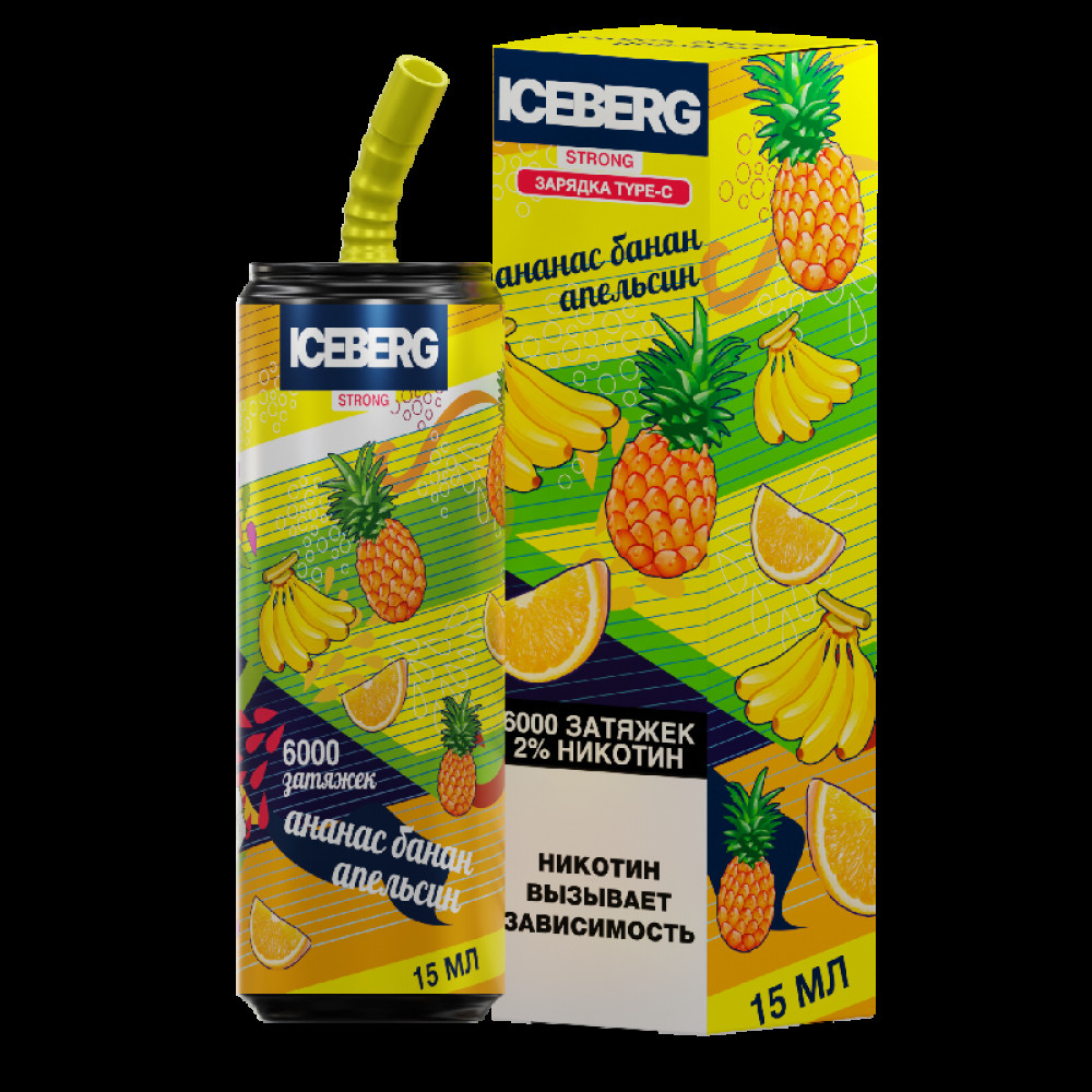 ICEBERG видыXXL 6000 | ICEBERG вкусыАнанас банан апельсин | ICEBERG количество в блоке10 шт |