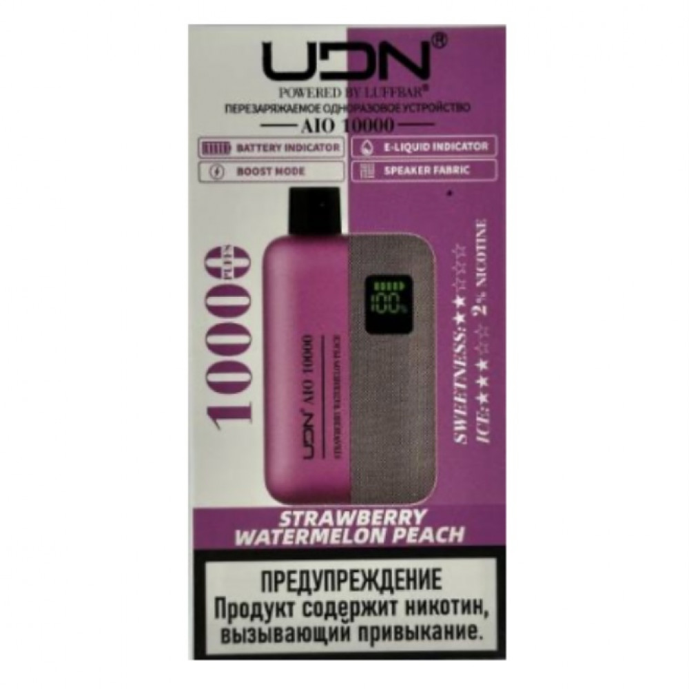UDN видыAIO 10000 | UDN вкусыКлубника Арбуз Персик | UDN количество в блоке10 шт |